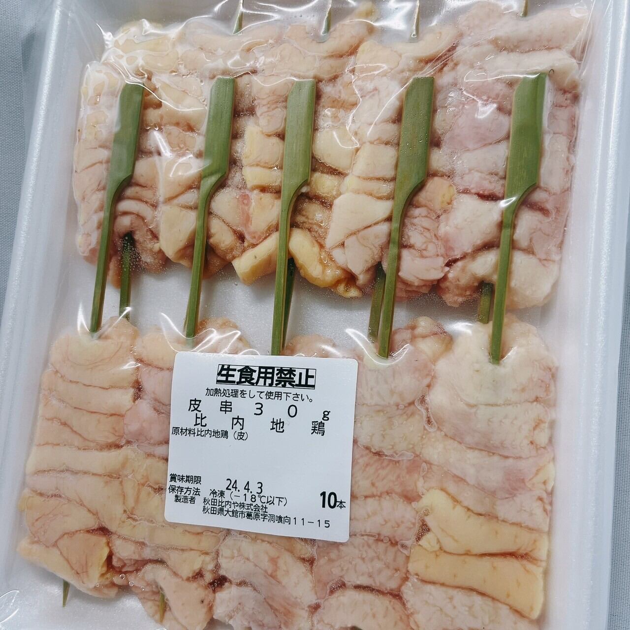 秋田比内鶏 皮串 1本30g×10本